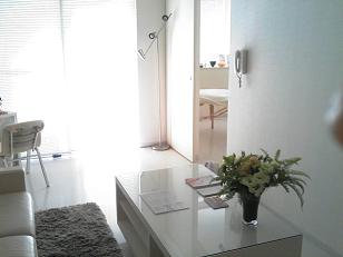 お借りしているデザイナーズマンションは、コンクリートの打ちっぱなしに真っ白なインテリアが、透明感と清潔感があって、とても素敵です。