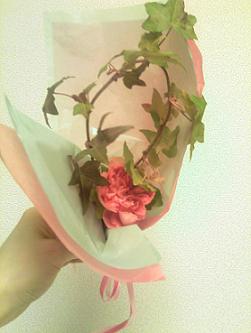 添えられた一輪は、赤いアイビーと小さなブーケに。