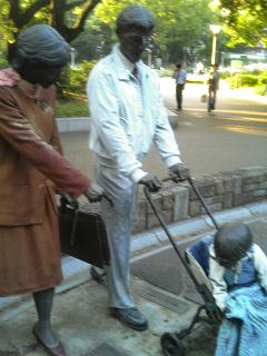 園内の像は、とてもほほえましくない表情がちょっと不気味。