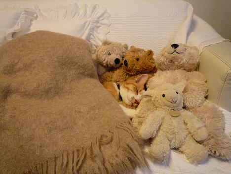 結果的には、にゃん様にかなりの量の生クリームを横取りされました・・・。 そして満足して、ぬくぬくと眠るにゃん様なのでした。